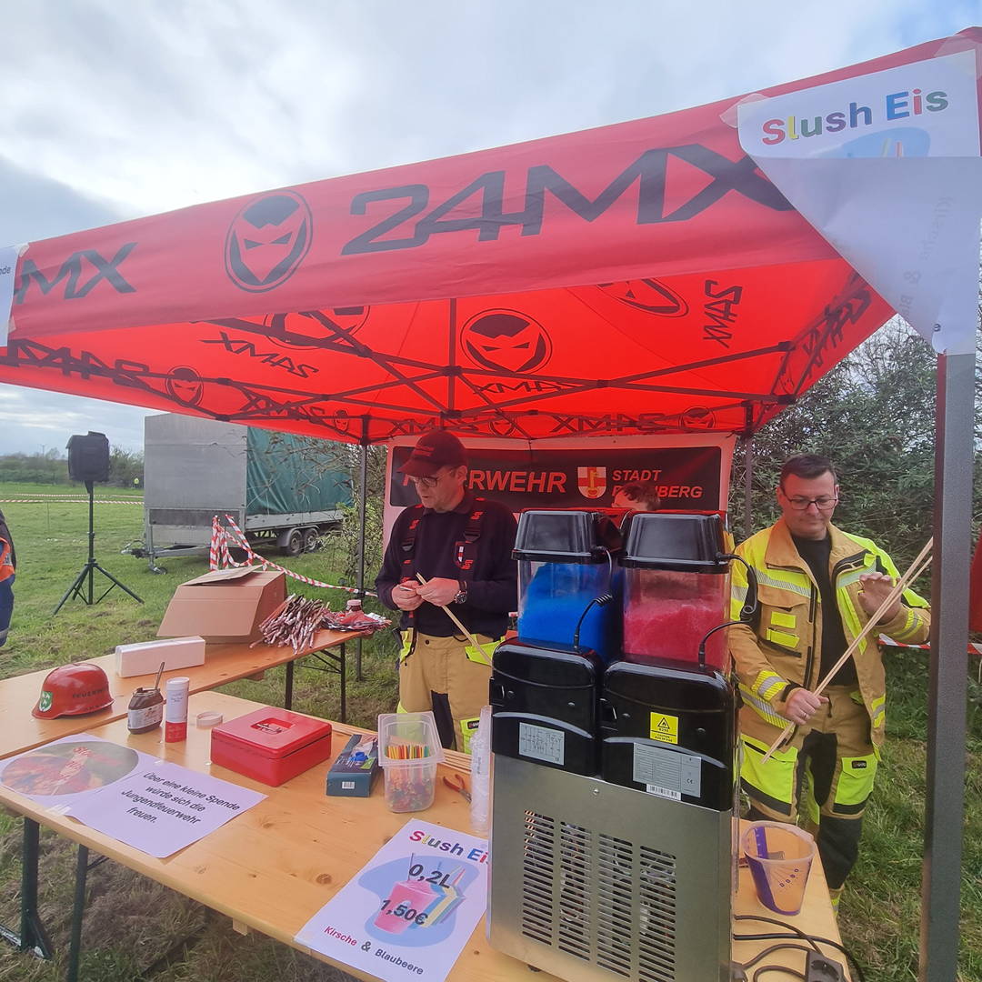 Ebenso wieder mit dabei war die bereits erwähnte Jugendfeuerwehr, die mit Slusheis und Stockbrot für Begeisterung sorgte. Gerade für die jüngeren Gäste war das ein fester Anlaufpunkt über den gesamten Abend hinweg.